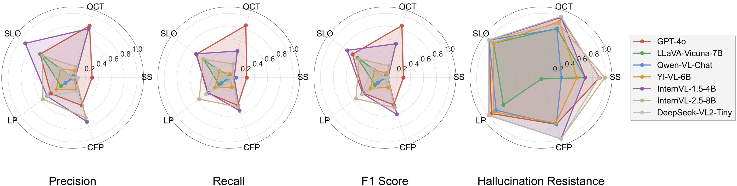 - Diverse Tasks: Comprehensive evaluation across 12 binary eye condition diagnosis tasks,