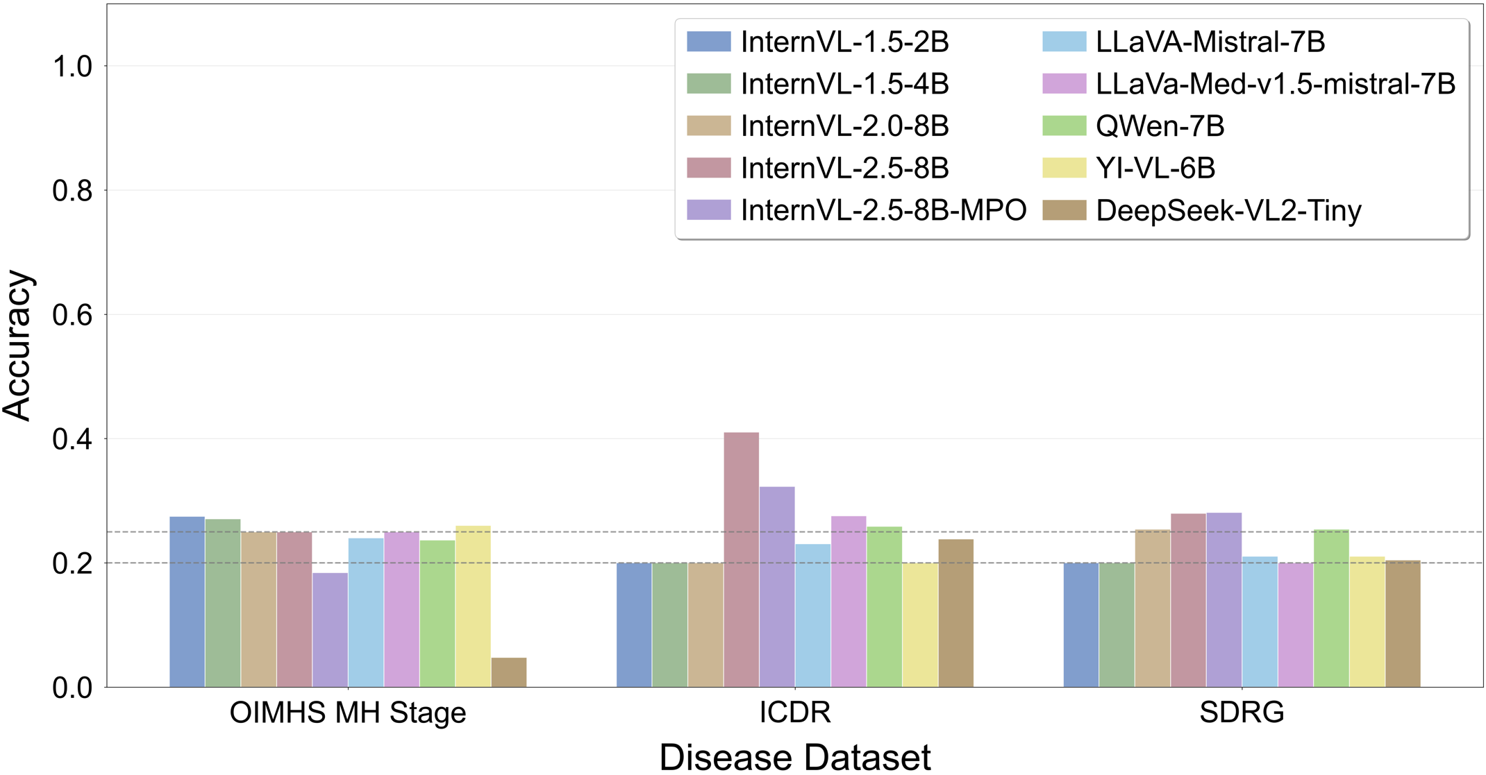 including recent advanced models such as InternVL, Qwen, and DeepSeek series